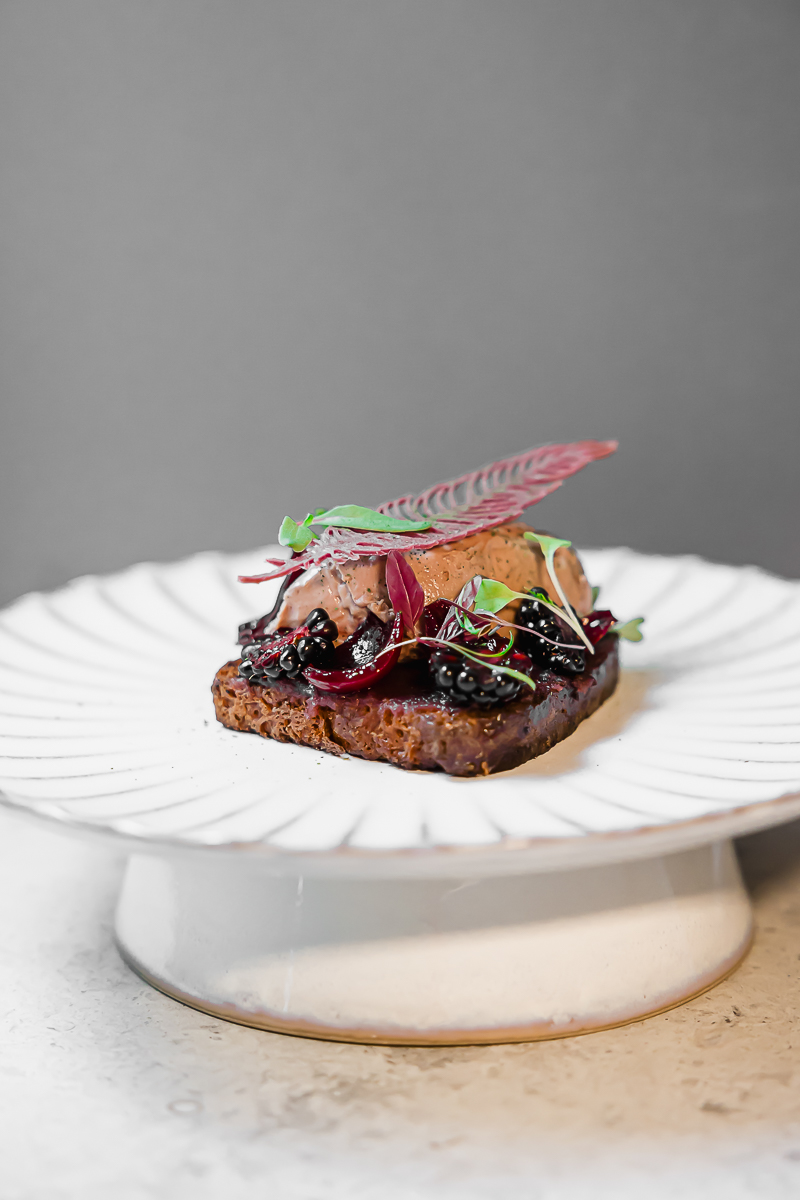 Pardimaksapatee briošil koos portveinise sibulamoosi ja põldmarjadega on taas siidise kontsistentsiga ning ahvatleva maitsega.